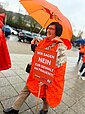 Unterstützt wurde unsere Auftaktveranstaltung unter anderem von den Omas gegen Rechts, dem Frauenrat Saarland, Vize-Landtagspräsidentin Dagmar Heib sowie der Gleichstellungsbeauftragten Doreen Schrecklinger-Leuchtle. Auch Oberbürgermeister Marcus Hoffeld dankte den Organisatorinnen für ihr Engagement. Trotz Regen und der krankheitsbedingten Absage der Sambagruppe „Balawaa“ ließ sich der Zug nicht aufhalten – Mergim Ukai sprang spontan mit seiner Tupan ein und sorgte für rhythmische Begleitung.