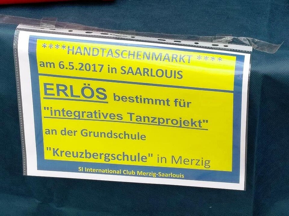 Unser Flohmarkt für Handtaschen im Mai 2017 war ebenfalls erfolgreich: wir konnten 1.680 € einnehmen. Der Erlös kam dem integrativen Tanzprojekt an der Kreuzbergschule in Merzig zugute.