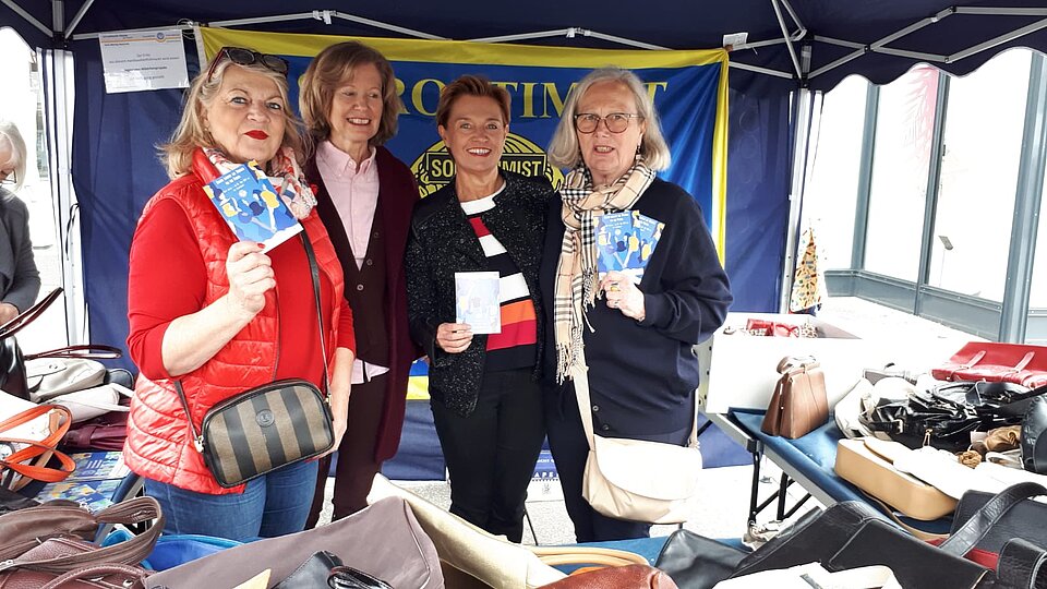 Der Flohmarkt fand einige Tage vor der Europawahl vom 26. Mai 2019 statt, sodass wir für eine Wahlbeteiligung besonders von Frauen warben. 2019 steht zudem unter dem Motto "100 Jahre Frauenwahlrecht": 100 Jahre ist es her, dass Frauen zum ersten Mal wählen und sich wählen lassen durften - ein hart erkämpftes Recht.