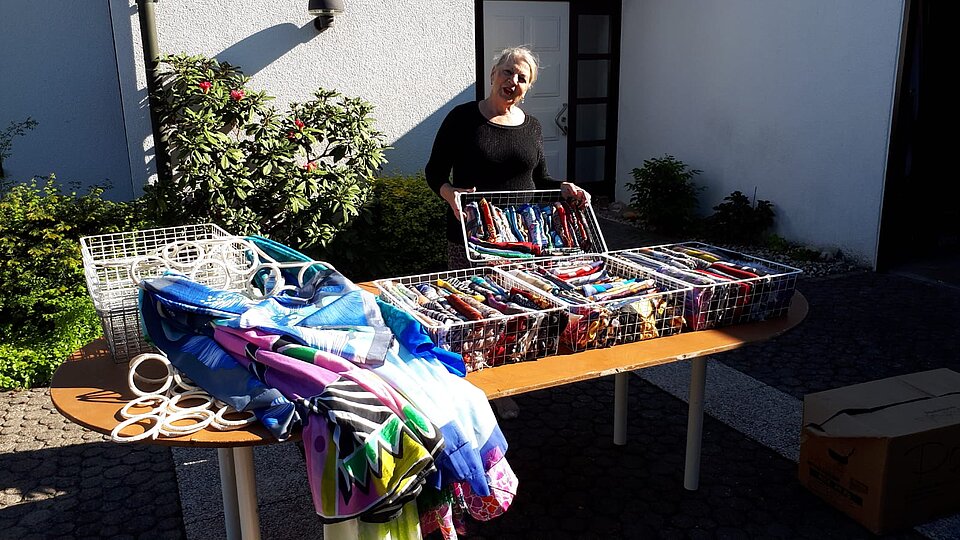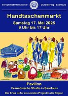 Unser fünfter Handtaschenmarkt hat am 18. Mai 2019 erneut unter dem Pavillon in der Französischen Straße in Saarlouis stattgefunden. Bei diesem Flohmarkt haben wir neben Handtaschen auch Schals und Tücher angeboten. Mit dieser Neuauflage konnten wir 1.570 € einnehmen. Der Erlös kam unseren Frauen- und Mädchenprojekten zugute.