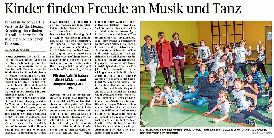 Unser Club hat eine Patenschaft "Tanz in der Schule" übernommen, dessen Initiator der gemeinnützige Verein LAG Tanz im Saarland ist.