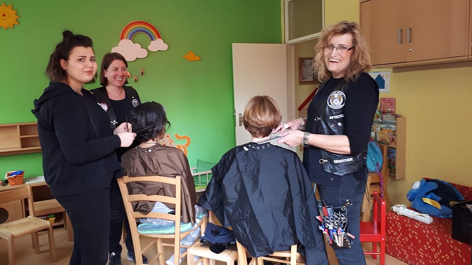 Im Mai 2019 waren auf Einladung unseres Clubs SI Merzig-Saarlouis 2 Friseurinnen der "Barber Angels Brotherhood" im Frauenhaus Saarlouis zu Gast, um Bedürftigen ehrenamtlich und kostenfrei die Haare zu schneiden.