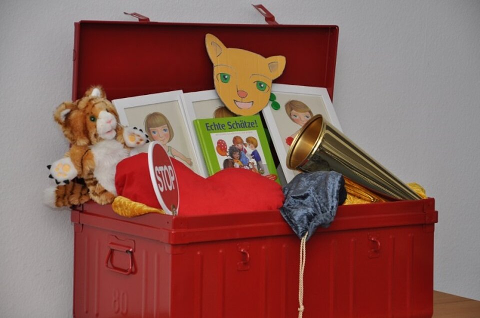 Nele hat davon für die Prävention im Elementarbereich eine Präventionskiste Echte Schätze, entsprechende Fachliteratur und Bilderbücher für Kinder angeschafft.